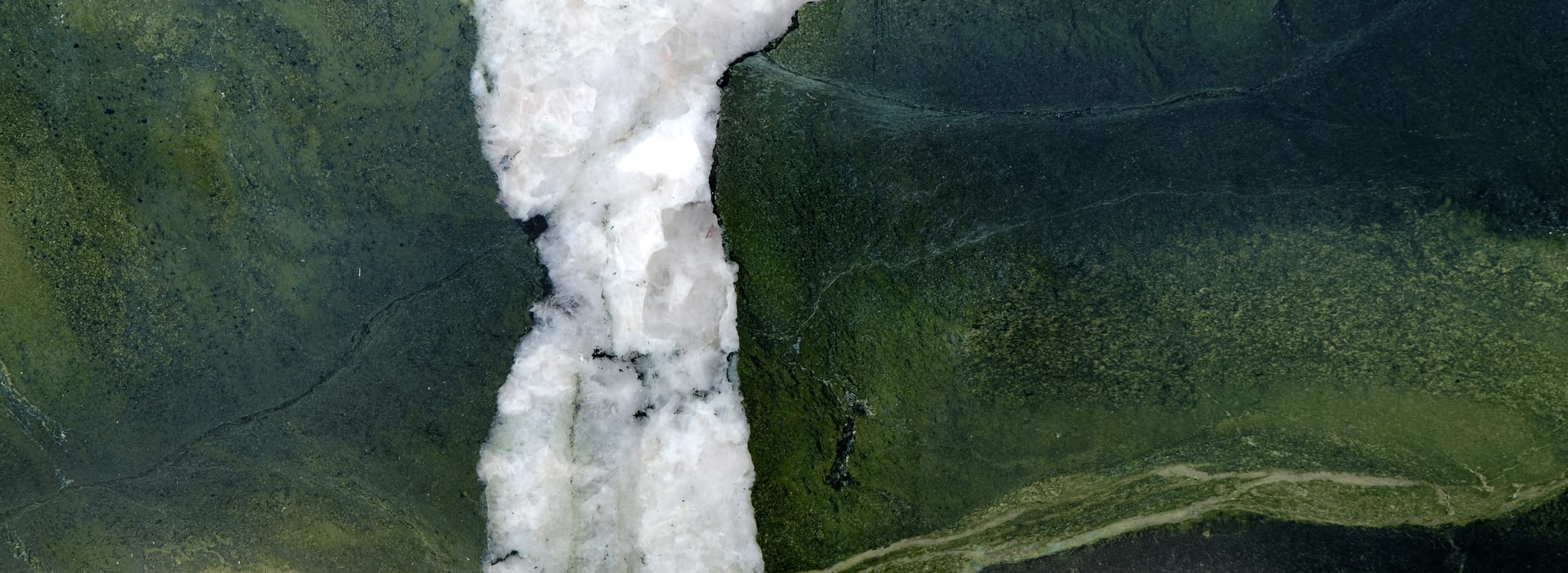 Granit Avocatus to niezwykle dekoracyjny kamień naturalny wyróżniający się głęboką, intensywną zielenią oraz kontrastowymi fragmentami białego kwarcu. Naturalna struktura kamienia tworzy dynamiczny rysunek przypominający formacje skalne lub naturalne krajobrazy, co nadaje mu wyjątkowy charakter.