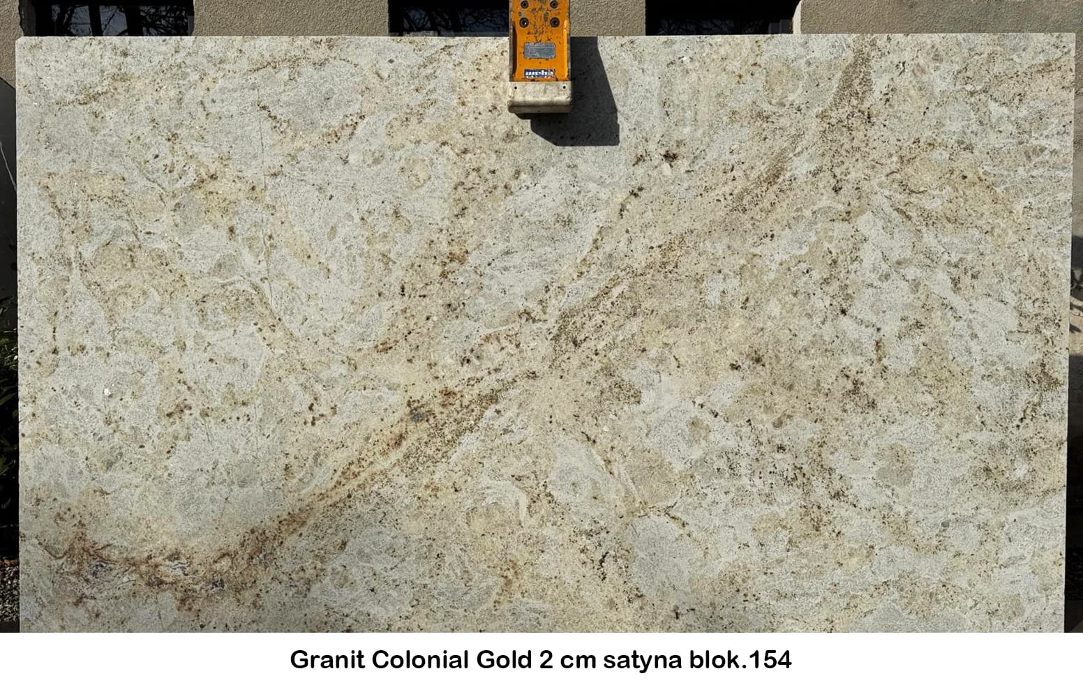 Granit Colonial Gold 2 cm satyna (blok 154) to doskonały wybór dla osób, które szukają trwałego, eleganckiego i ciepłego w odbiorze kamienia naturalnego.