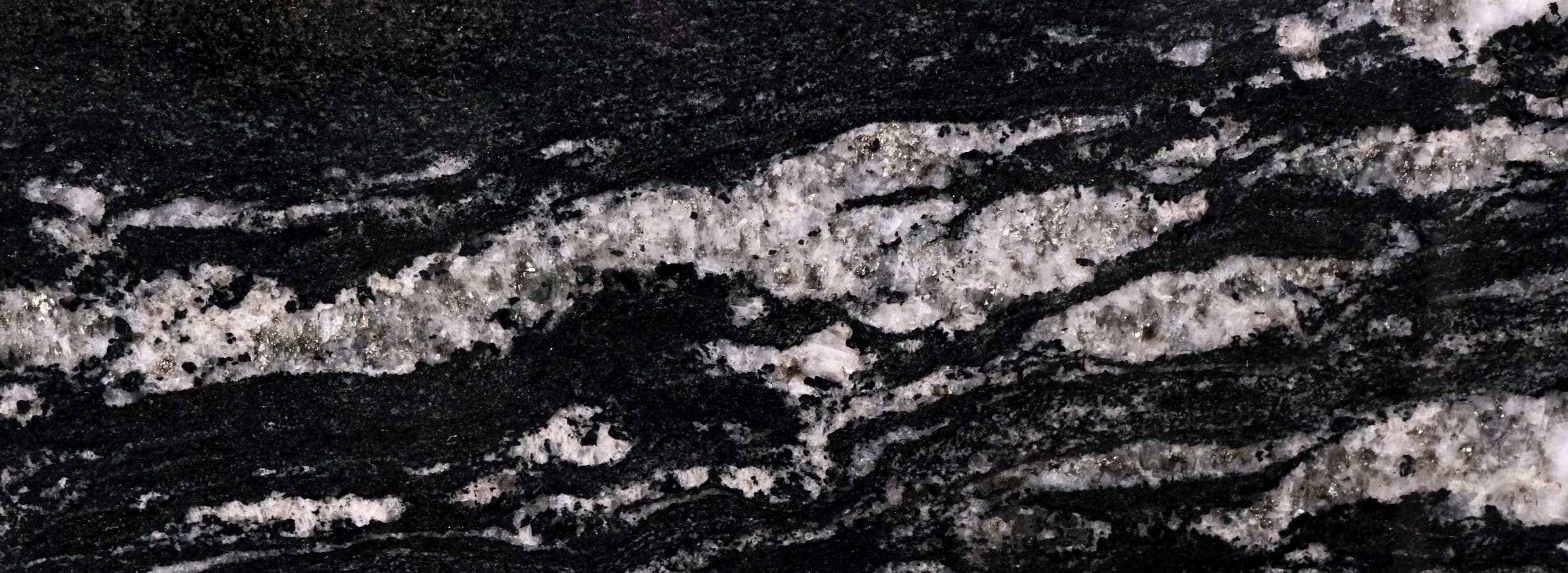 Granit Cosmic Black to wyjątkowy kamień naturalny, który wyróżnia się intensywną, głęboką czernią oraz kontrastowymi żyłami mineralnymi. Na powierzchni kamienia widoczne są nieregularne pasma w odcieniach bieli, szarości i grafitu, które tworzą efektowny, dynamiczny rysunek przypominający kosmiczne formacje.