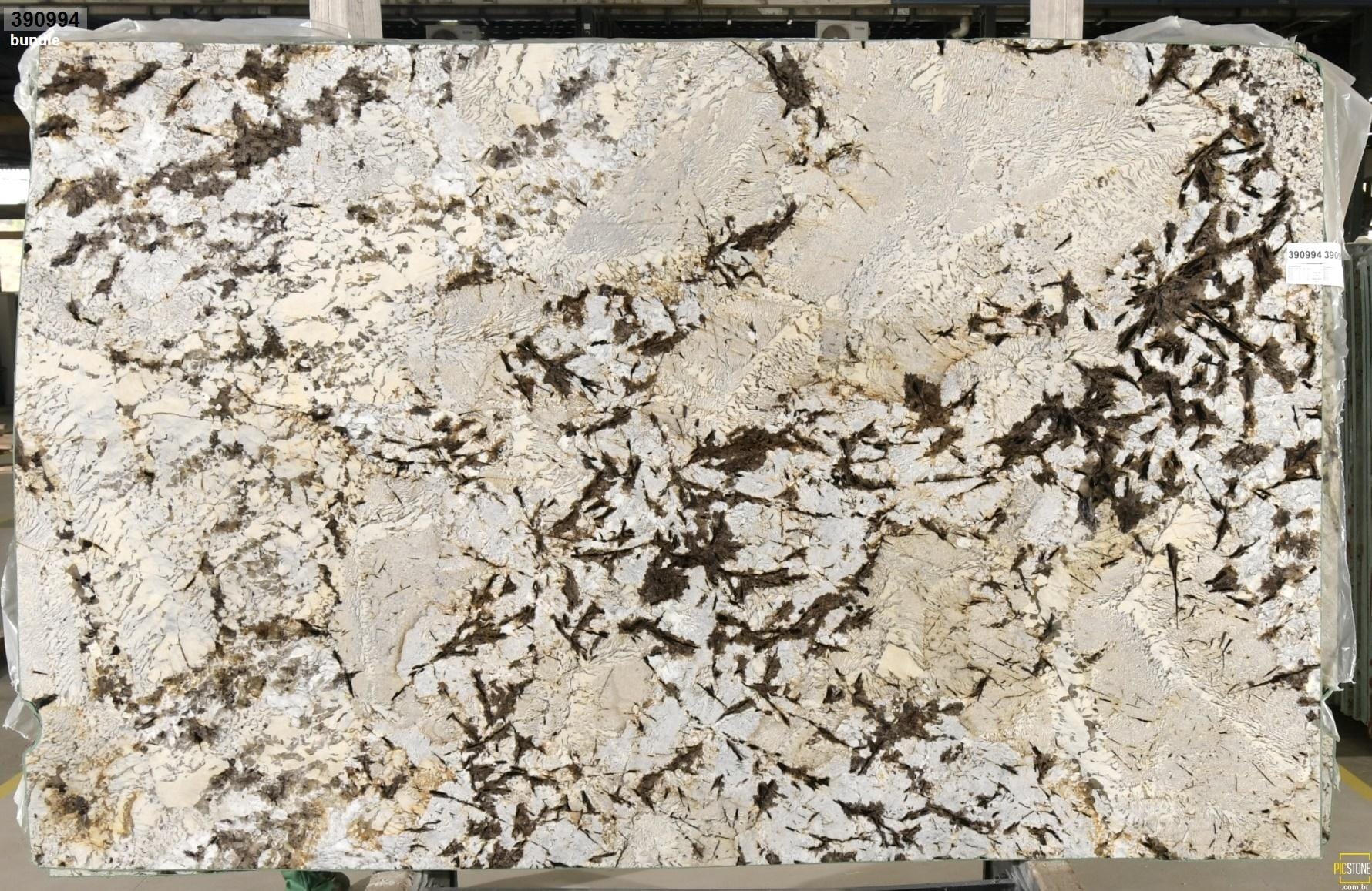 Każda płyta jest unikatowa – kontrast pomiędzy jasnym tłem a ciemnymi akcentami sprawia, że kamień staje się centralnym elementem aranżacji.