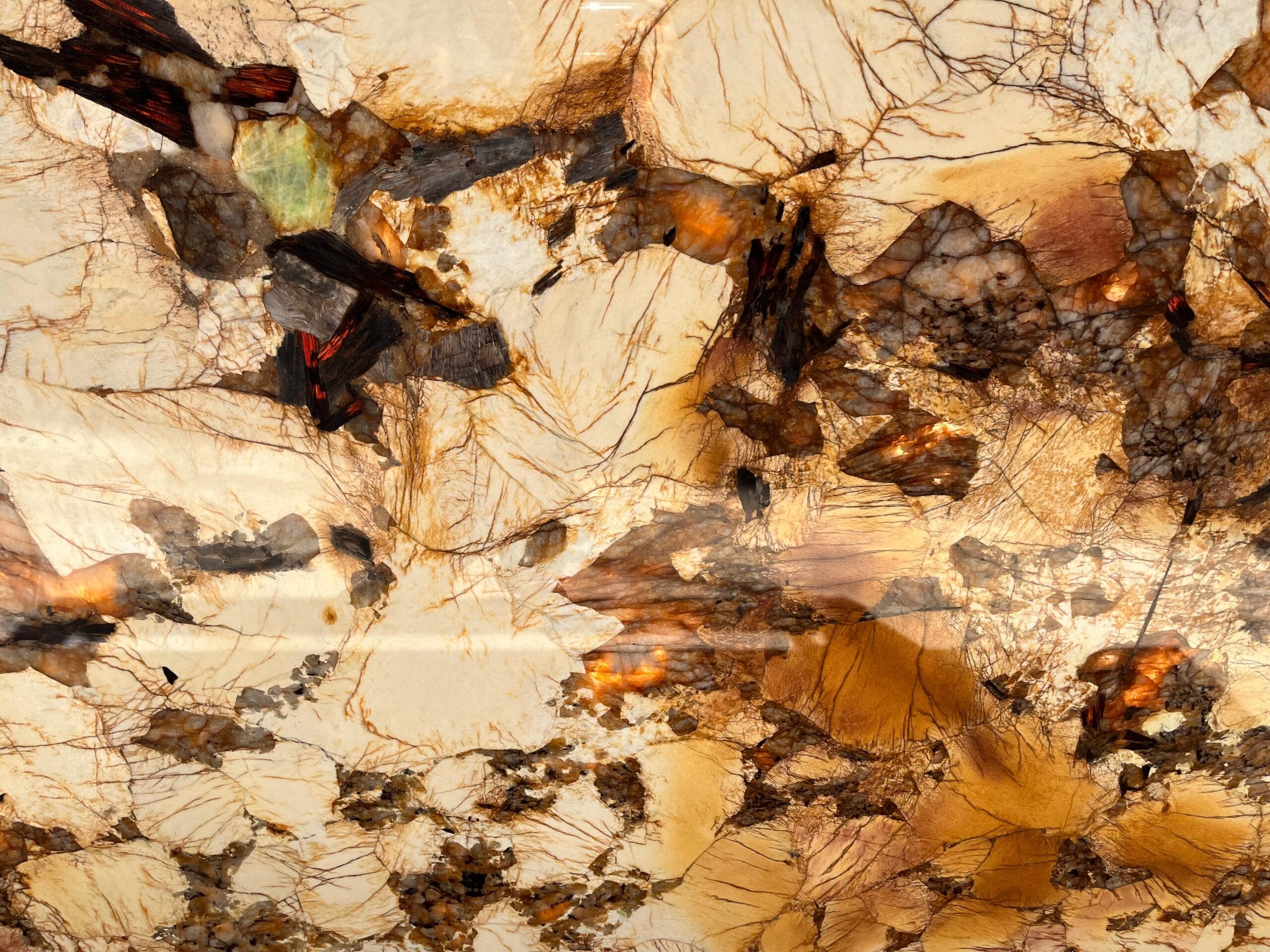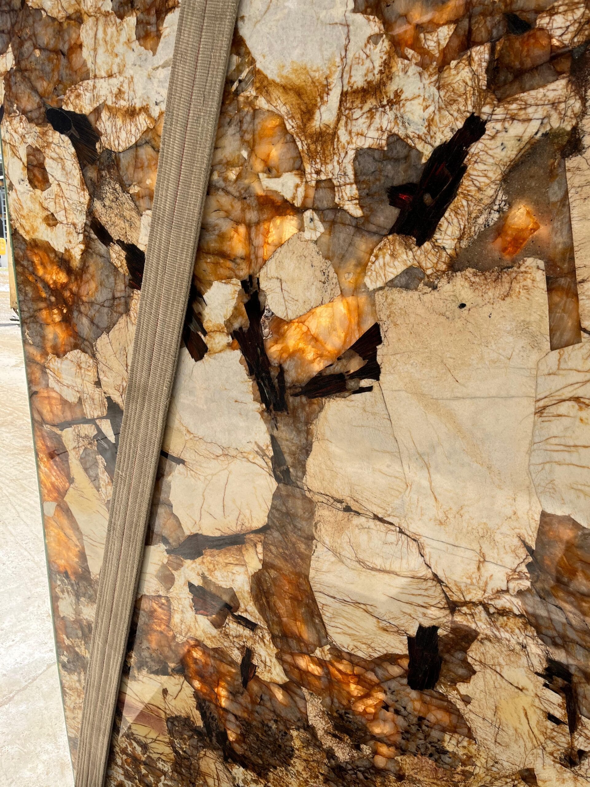 Prezentowany blok 04789 w grubości 2 cm i wykończeniu poler wyróżnia się intensywnym kontrastem i dynamicznym układem form mineralnych. Polerowana powierzchnia wydobywa głębię barw oraz efekt trójwymiarowości, sprawiając, że kamień prezentuje się niezwykle luksusowo i elegancko.