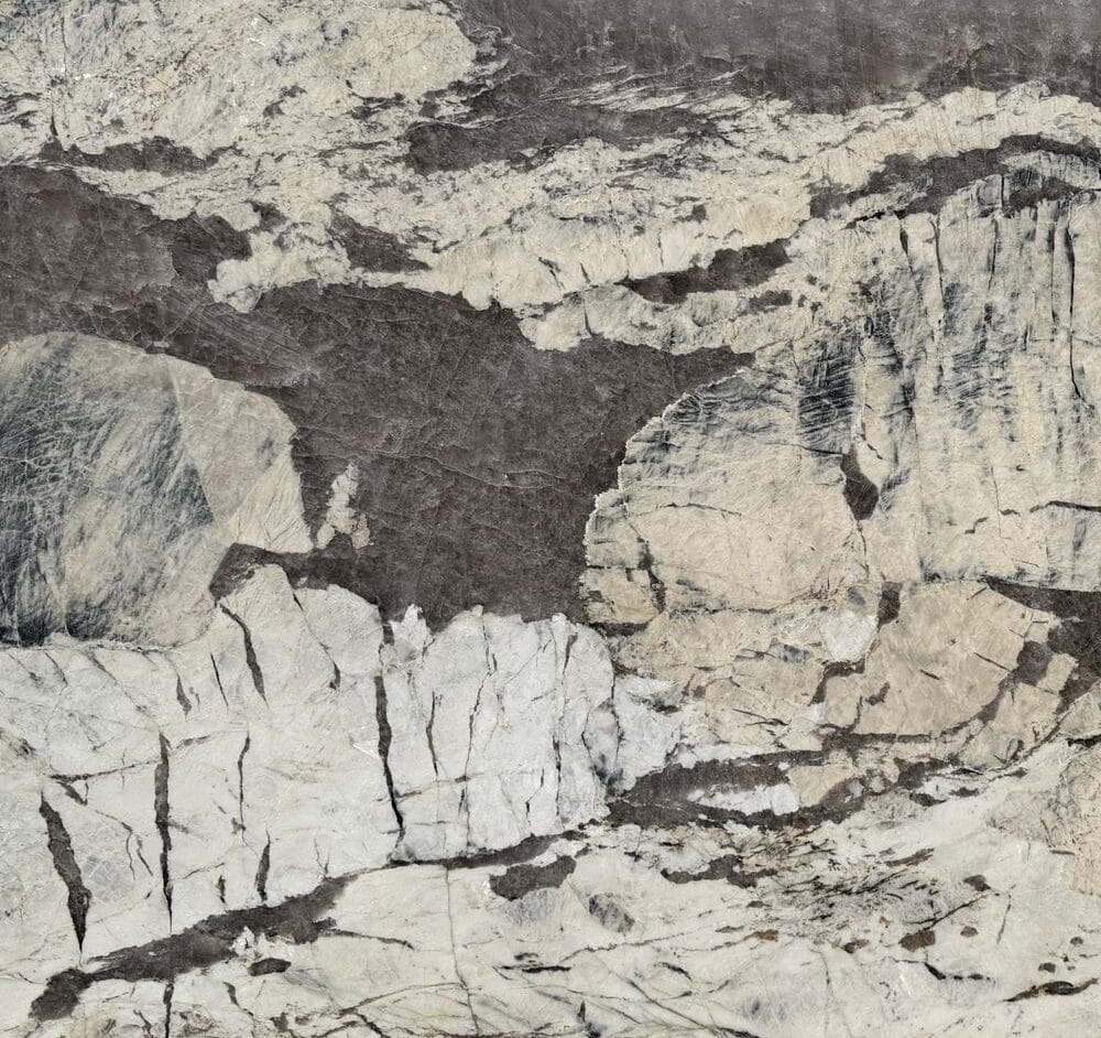 Kwarcyt Naturalny Patagonia 2 cm poler to wyjątkowy kamień naturalny ceniony na całym świecie za swoją spektakularną strukturę oraz niepowtarzalną estetykę. Powierzchnia kamienia tworzy naturalną mozaikę minerałów – jasne fragmenty kwarcu w odcieniach bieli, kremu i jasnej szarości kontrastują z ciemniejszymi partiami w kolorze grafitu i brązu.