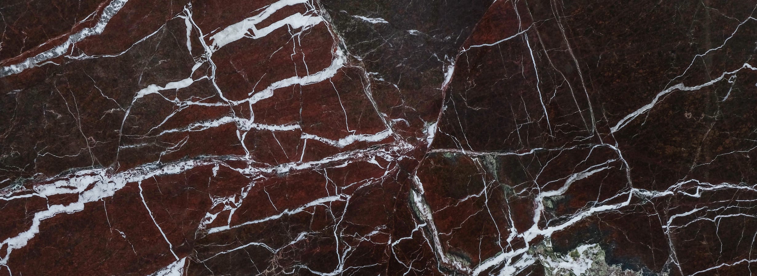 Marmur Rosso Lepanto to szlachetny kamień naturalny o wyjątkowej kolorystyce oraz wyrazistym rysunku mineralnych żył. Charakterystyczne dla tego marmuru są intensywne odcienie ciemnej czerwieni, bordo oraz brązu, które przełamane są kontrastowymi białymi i jasnoszarymi żyłami.