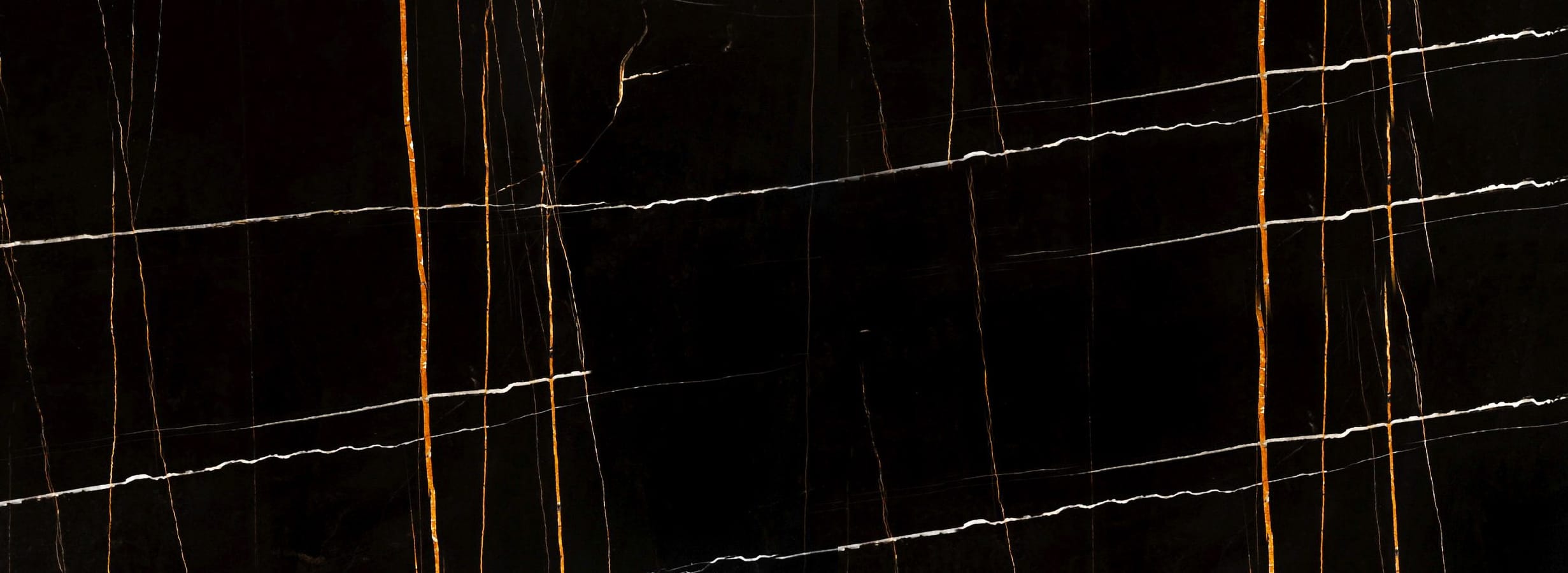 Marmur Sahara Noir to jeden z najbardziej eleganckich i rozpoznawalnych marmurów naturalnych, ceniony za swoją głęboką czarną kolorystykę oraz charakterystyczne, kontrastowe żyły mineralne. Na powierzchni kamienia widoczne są nieregularne linie w odcieniach bieli, złota oraz subtelnych tonów miedzi, które tworzą dynamiczny i luksusowy rysunek.