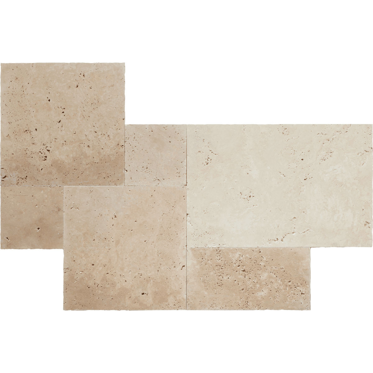 Płytki z trawertynu Light Premium bębnowanego to doskonały wybór dla osób ceniących naturalne materiały i ponadczasową estetykę. Komplet o powierzchni 0,742 m² zawiera elementy w różnych formatach, tworzące klasyczny układ inspirowany stylem opus romano.