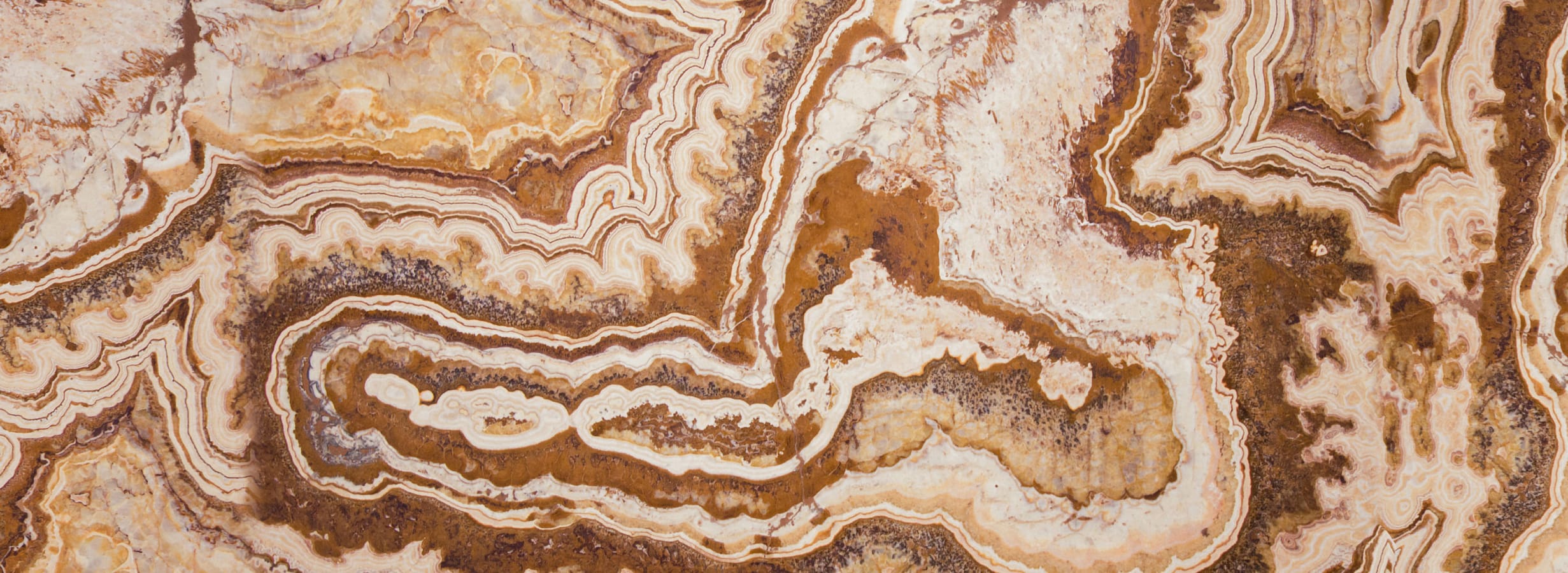 Onyx Persian Carpet to ekskluzywny kamień naturalny, który wyróżnia się swoją złożoną, ornamentalną strukturą oraz intensywną, ciepłą kolorystyką. Na jego powierzchni widoczne są falujące, wielowarstwowe pasma w odcieniach karmelu, miodu, beżu, kremu oraz głębokiego brązu, układające się w wzór przypominający misternie tkany, orientalny dywan.