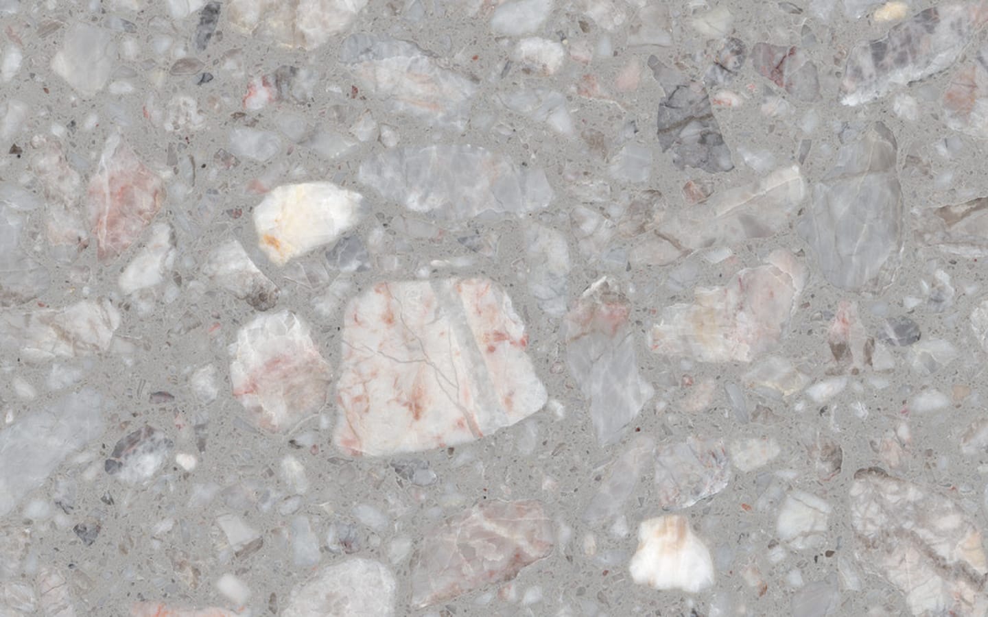 Charakterystyczne, lekko różowawe akcenty nadają materiałowi wyjątkowego charakteru, wprowadzając do wnętrza subtelne ocieplenie i luksusowy wygląd. Struktura płytki jest wyważona – dekoracyjna, ale jednocześnie spokojna i uniwersalna.