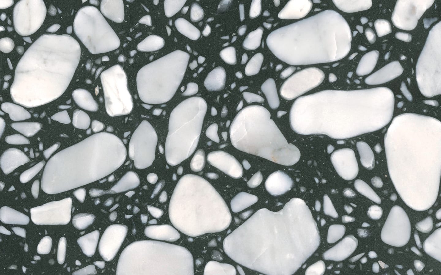 Płytka marmurowa Palladio Moro 60×60 to wysokiej jakości materiał inspirowany klasycznym terrazzo, wyróżniający się ciemnozielonym tłem oraz wyrazistą strukturą marmurowego kruszywa w jasnych odcieniach. Na jej powierzchni dominują kontrasty pomiędzy głęboką zielenią a bielą, kremem i jasną szarością, co tworzy nowoczesną i elegancką kompozycję.